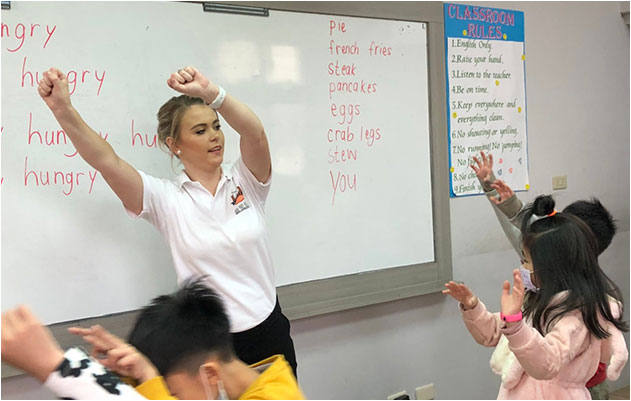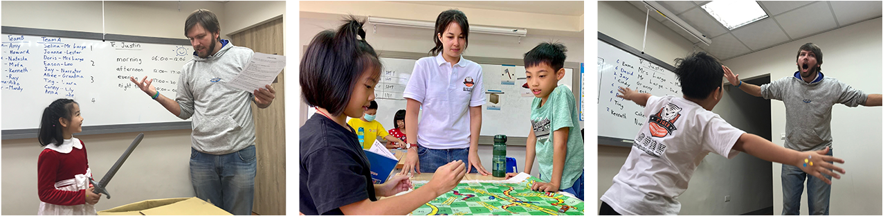 用多頻率的探究式教學法(inquiry-based approach),以全外師全美語的上課模式結合美國小學教科書及ELT兒美教材,在校上課期間中外師皆以美語與孩子對談,讓孩子自然而然的熟悉陌生語言,進而內化成第二母語,讓說美語如同呼吸一樣自然。除【聽】【說】能力之外,從小一即開始培養【閱讀】【寫作】能力,完成Grade 6,即具備國中會考英語精熟度或全民英檢中高級程度。